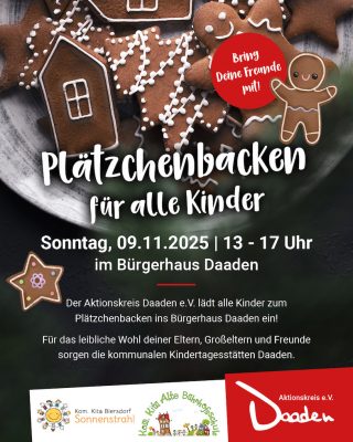 Neben gemütlicher Atmosphäre, vorweihnachtlichen und jahreszeittypischen Ständen gibt es eine große Auswahl an Speisen und Getränken, so dass die Küche kalt bleiben kann. Für die Kinder gibt es wieder das Plätzchenbacken im Bürgerhaus.